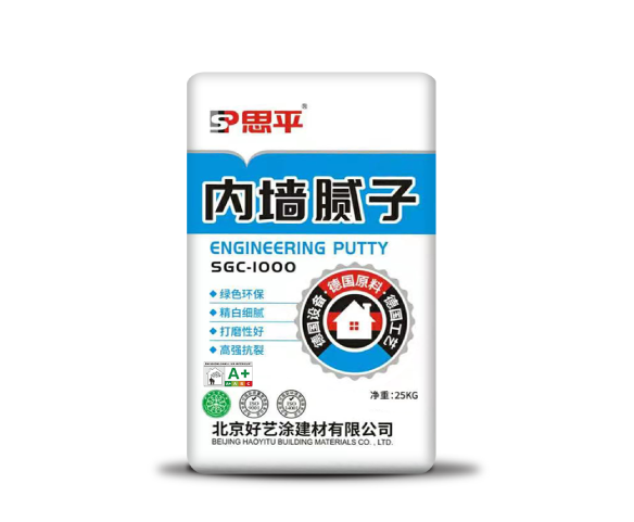 隨著人們對居住環境的逐步提高,乳膠漆得到了迅猛的發展和普及;但是與乳膠漆配套的墻面找平材料幾十年來一直未有改變,仍停留在大白粉+膠+纖維素、821普通膩子粉或仿瓷涂料上。這些材料在受潮或經過一段時間使用后極易出現起皮、脫粉或開裂現象,無論表面的乳膠漆多么好都要被拱掉,同時傳統的膩子含有大量的甲醛、氨等致癌有害物質對人們的健康造成了很大的危害。為了滿足乳膠漆發展的需要和對健康的追求,我公司開發了DG1000。本品涂膜精白、細膩、易打磨,具有良好的粘結強度和抗裂性;是乳膠漆的良好配套產品。本品無毒、無味屬綠色環保產品。
